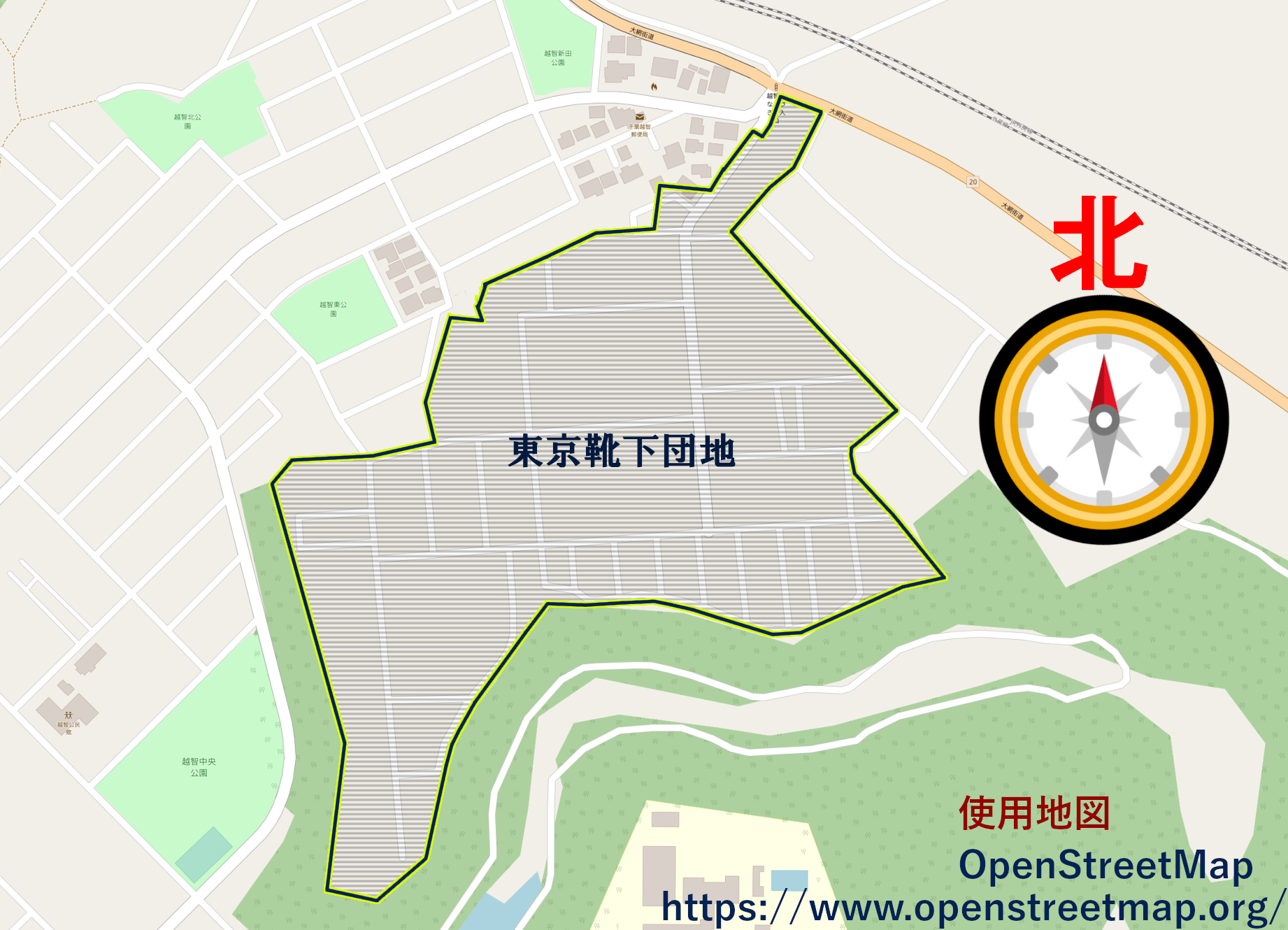 東京靴下団地の境界線はおおよそのものであり正確ではありません。